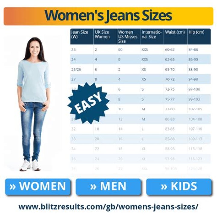 | US Size | UK Size | Jeans Waist Size |